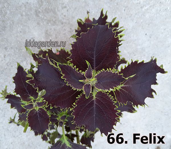Колеус с почти чёрными резными листьями